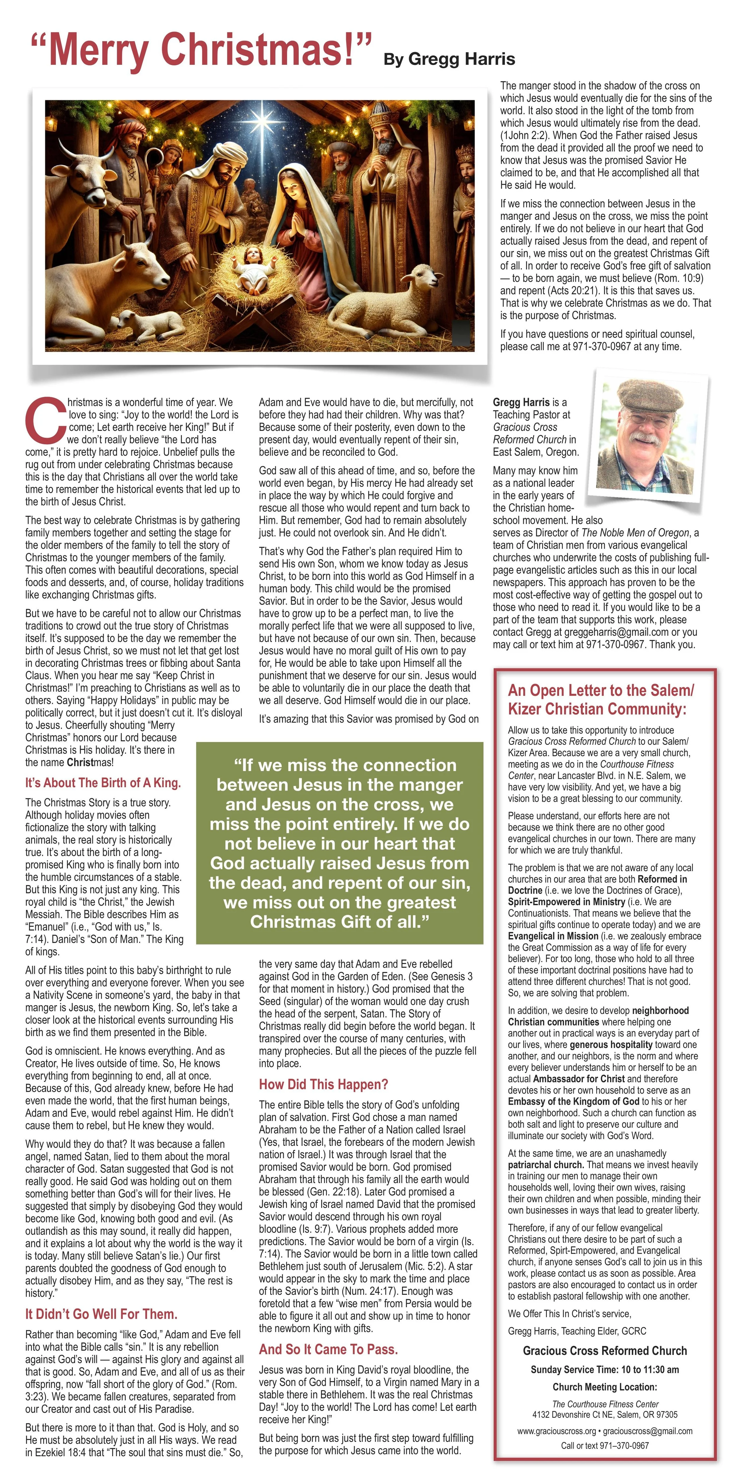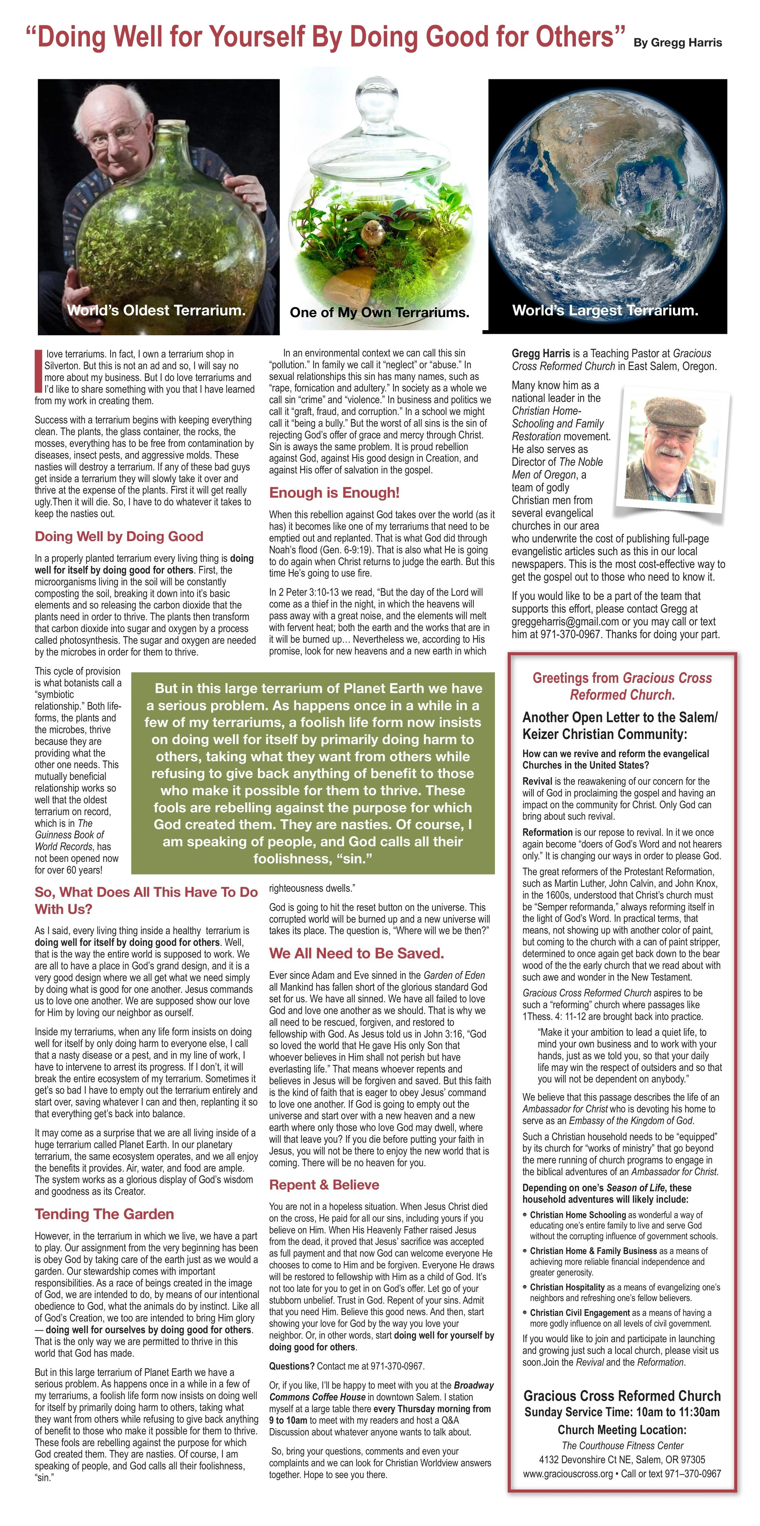 One of the “noble deeds” our brotherhood undertakes is to write, sponsor, and publish a full-page evangelistic article in the Our Town newspaper in the first edition of each month. This purchase of the advertising space (at a rate of $1830 per article) is covered by the generosity of the Noble Men. (An example of our work is provided below).
