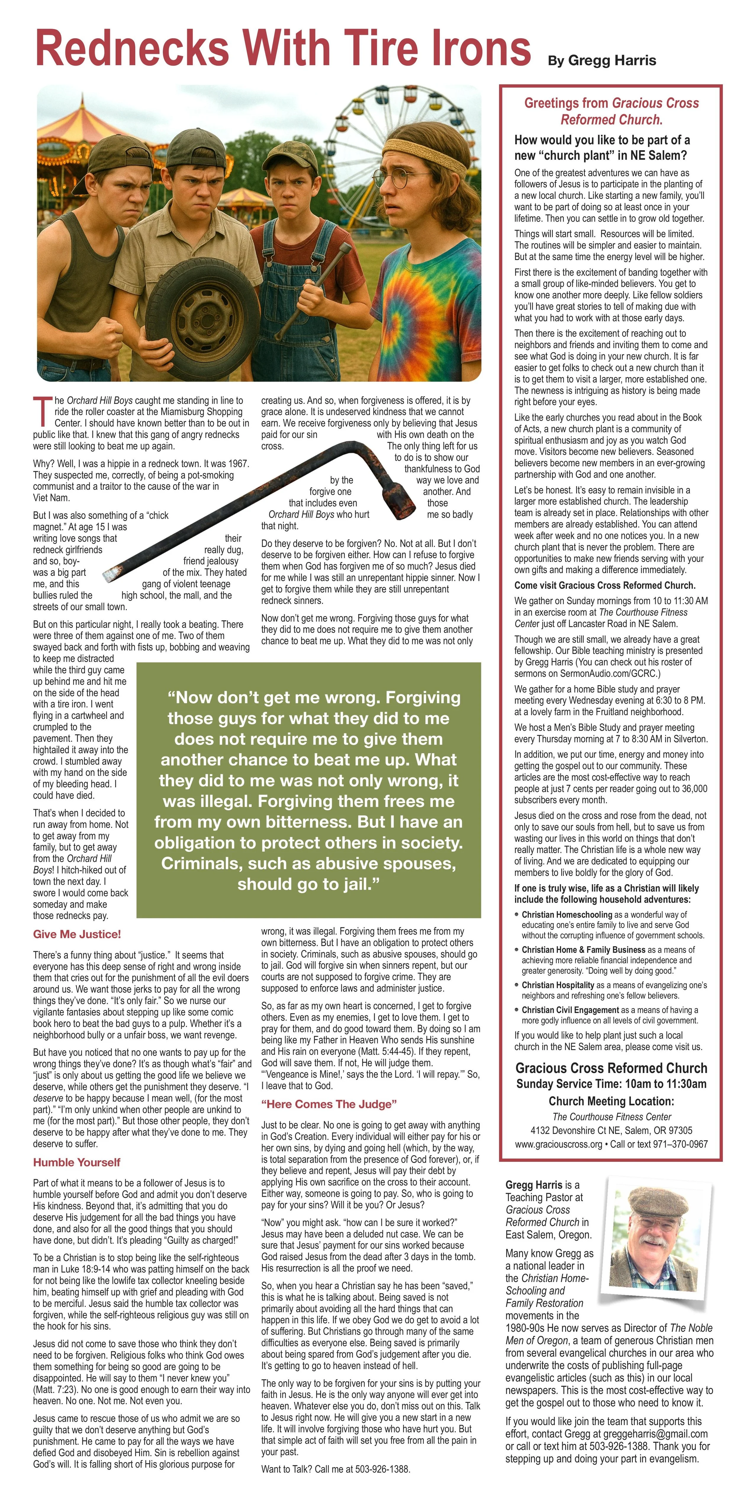 Just click our Donate/Invest button below to give trough our Donation Portal, or, if you prefer, you may make your check out to Noble Men of Oregon & GCRC, and mail it to: The Noble Inn, 409 S. Water Street, Silverton, OR 97381. It will be deposited into the account of Gracious Cross Reformed Church for tax deduction purposes.
